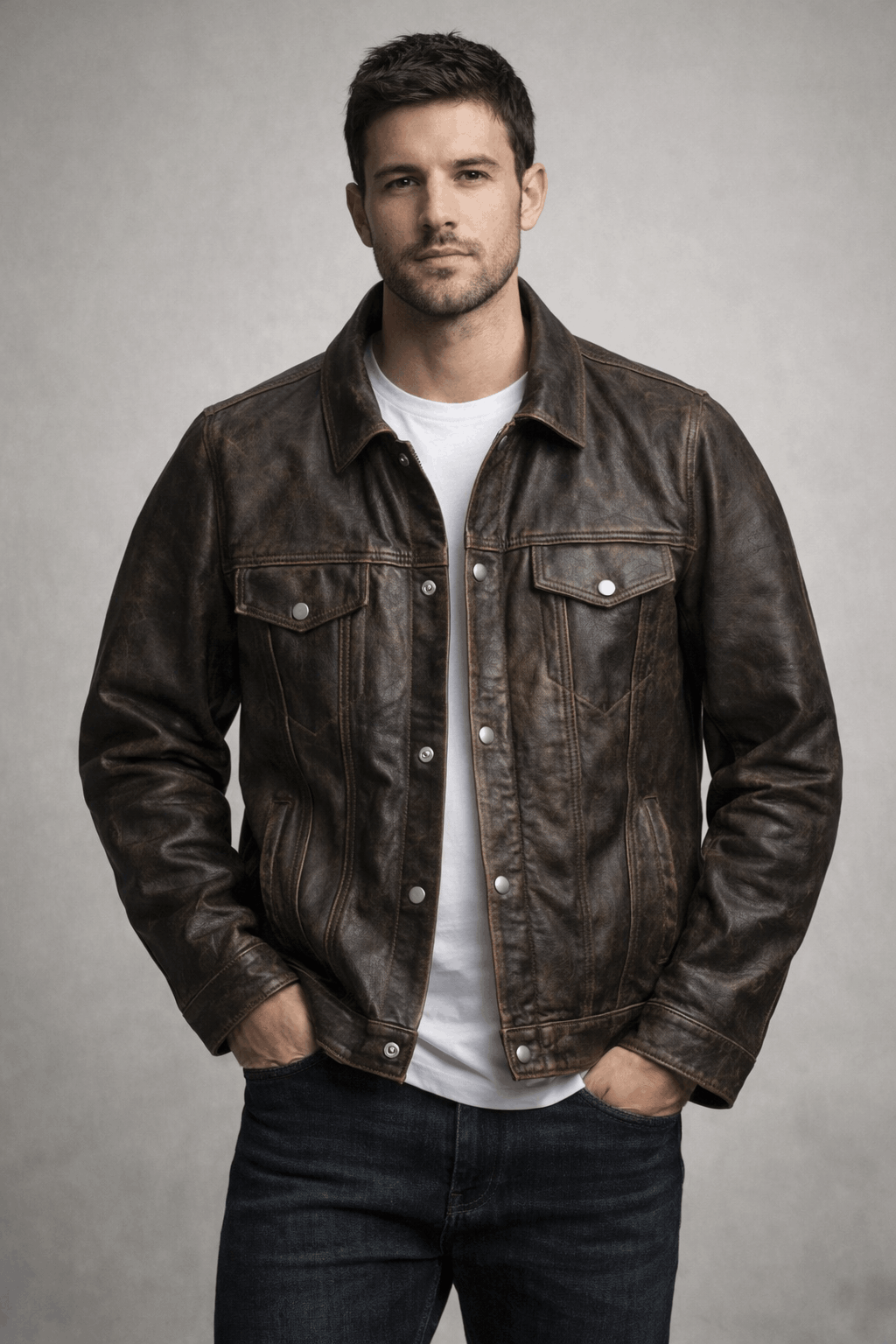 Lamb Trucker Jacket Distressed Brown (Mens)