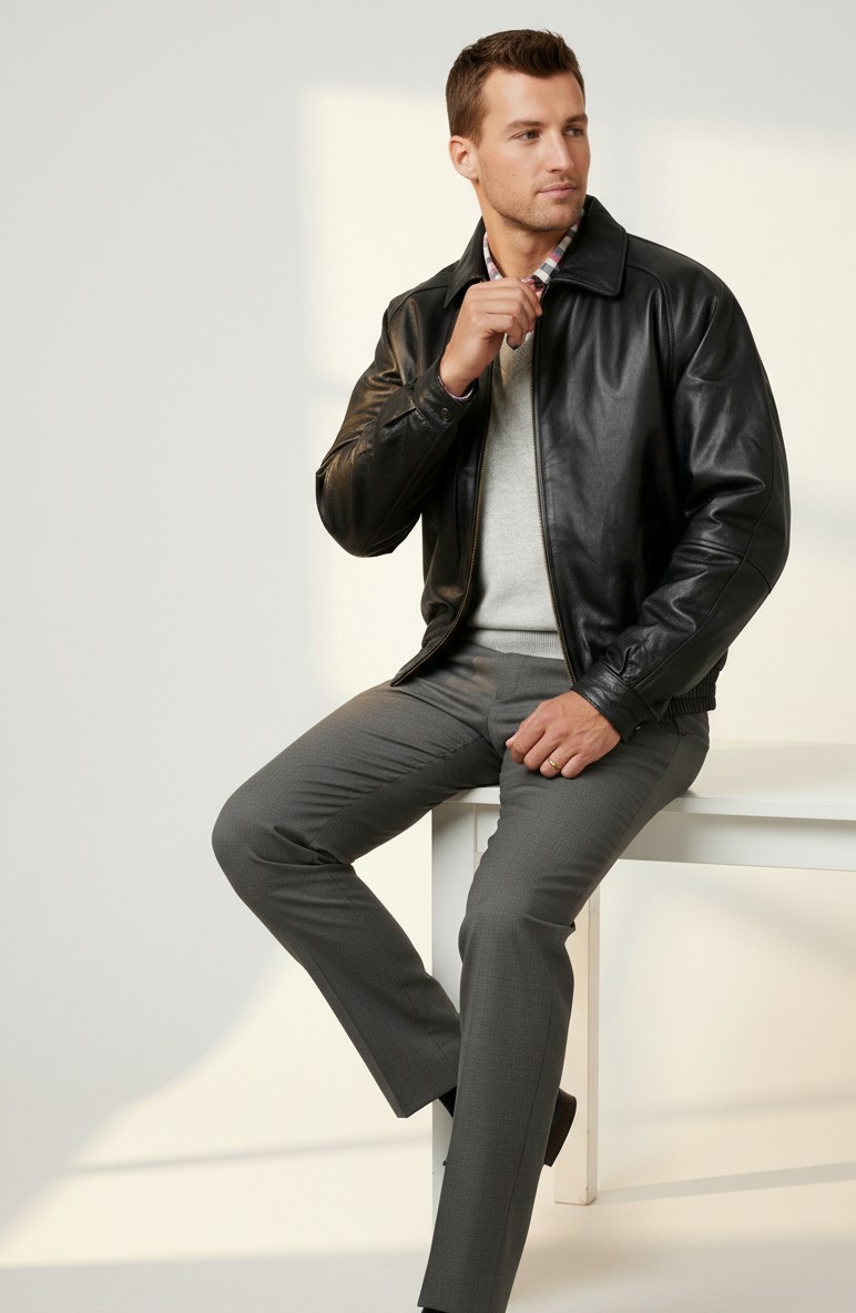 Retro Jacket with a Premium Vintage Napa finish.Includes a full front zipper, zippered slash pockets and a zip cuff. Features durable folded seam construction.