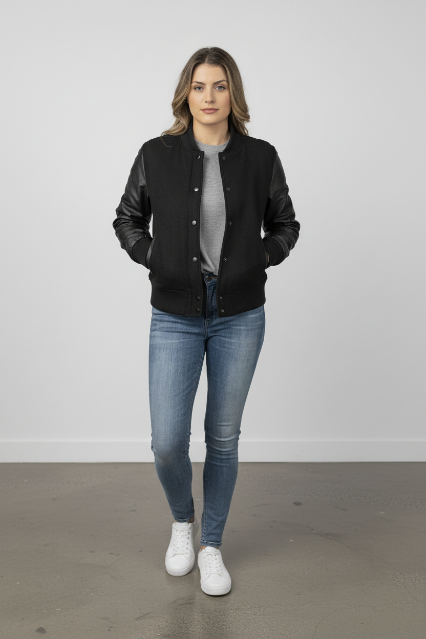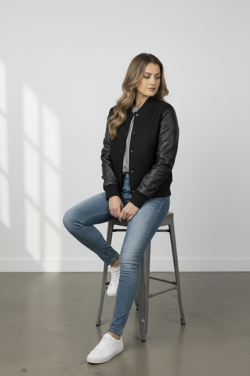 Sporty meets Chic with this varsity styled jacket.
